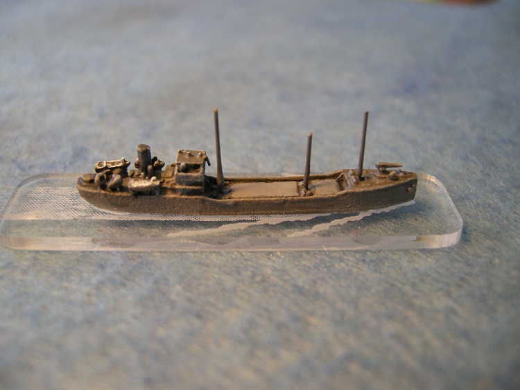 French transport Golo, from a Viking Forge casting in 1/2400. Guitar string masts on an ODGW etched base.
